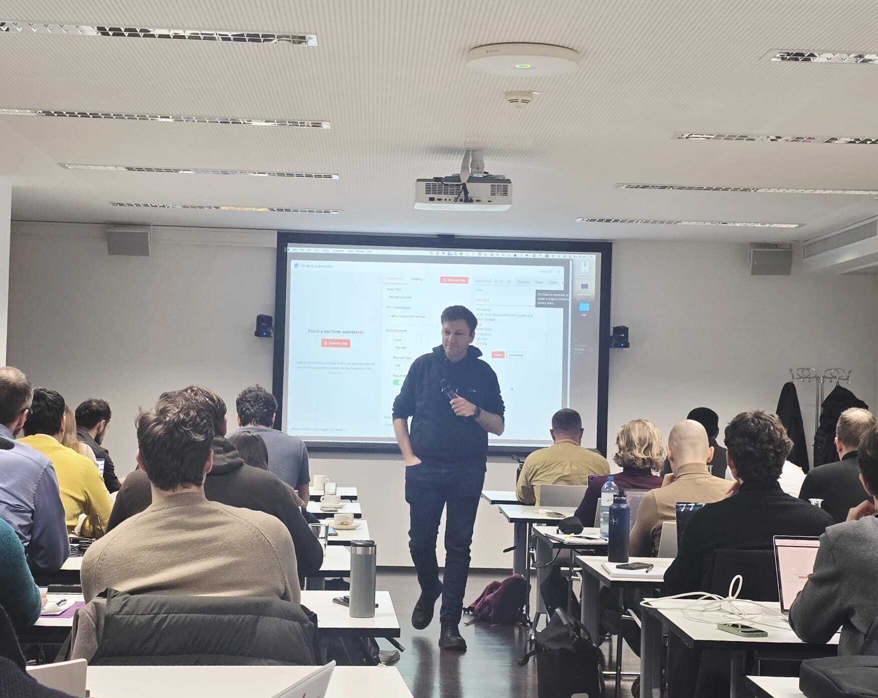 Introductions, laptop setup, n8n accounts ready to go. We make sure everyone starts on the same page.